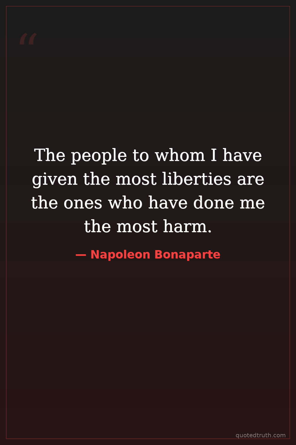 The people to whom I have given the most liberties are the ones who have done me the most harm.