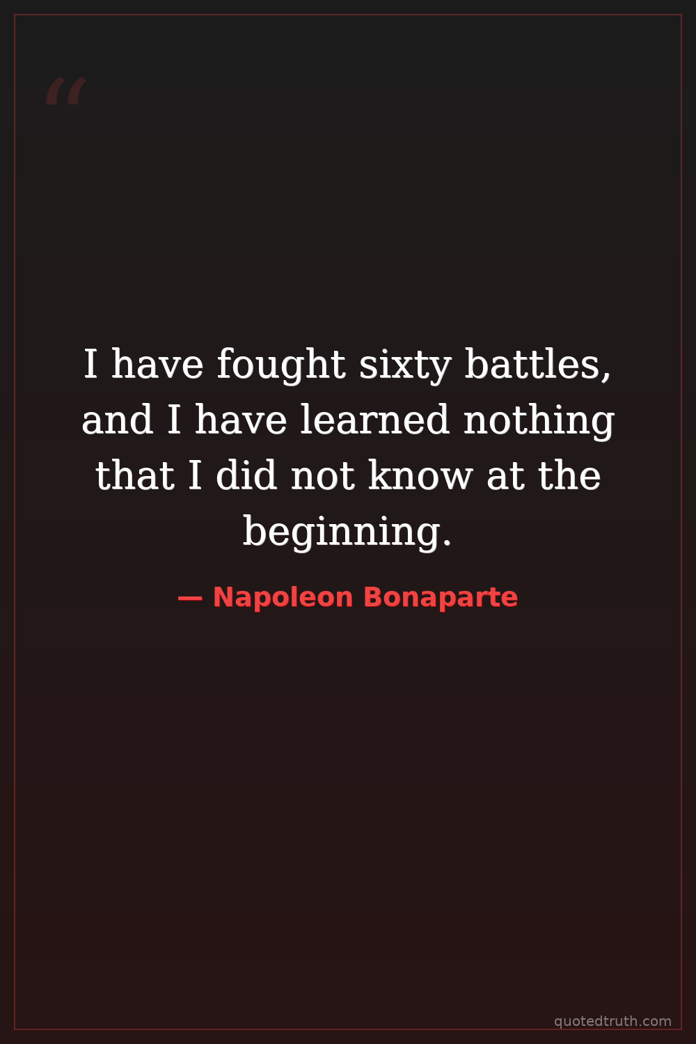 I have fought sixty battles, and I have learned nothing that I did not know at the beginning.