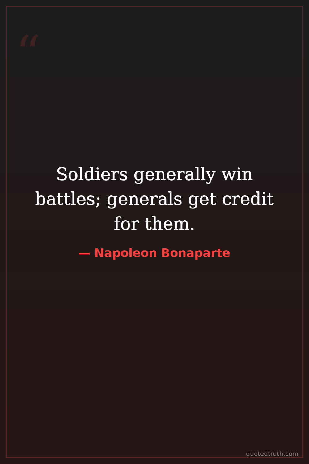 Soldiers generally win battles; generals get credit for them.