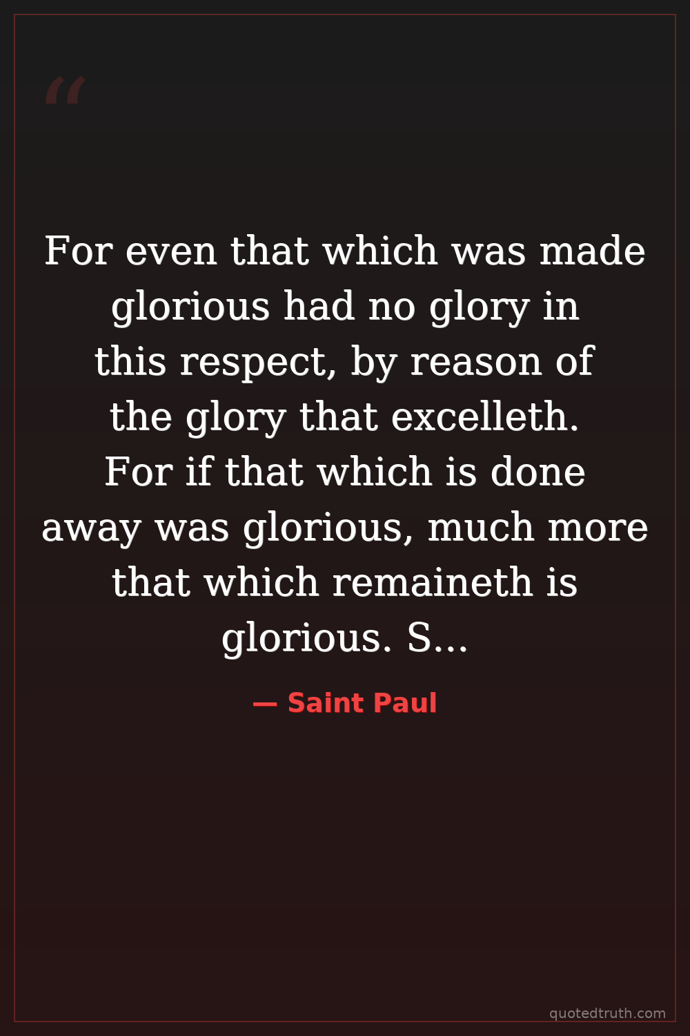 For even that which was made glorious had no glory in this respect, by reason of the glory that excelleth. For if that which is done away was glorious, much more that which remaineth is glorious. Seeing then that we have such hope, we use great plainness of speech: And not as Moses, which put a veil over his face, that the children of Israel could not stedfastly look to the end of that which is abolished: But their minds were blinded: for until this day remaineth the same veil untaken away in the reading of the old testament; which veil is done away in Christ. But even unto this day, when Moses is read, the veil is upon their heart.