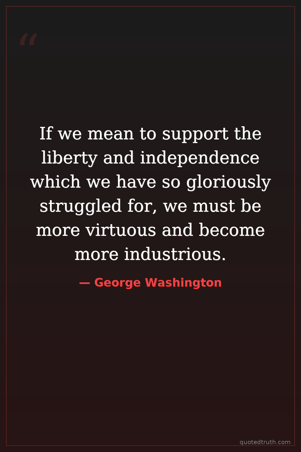 If we mean to support the liberty and independence which we have so gloriously struggled for, we must be more virtuous and become more industrious.