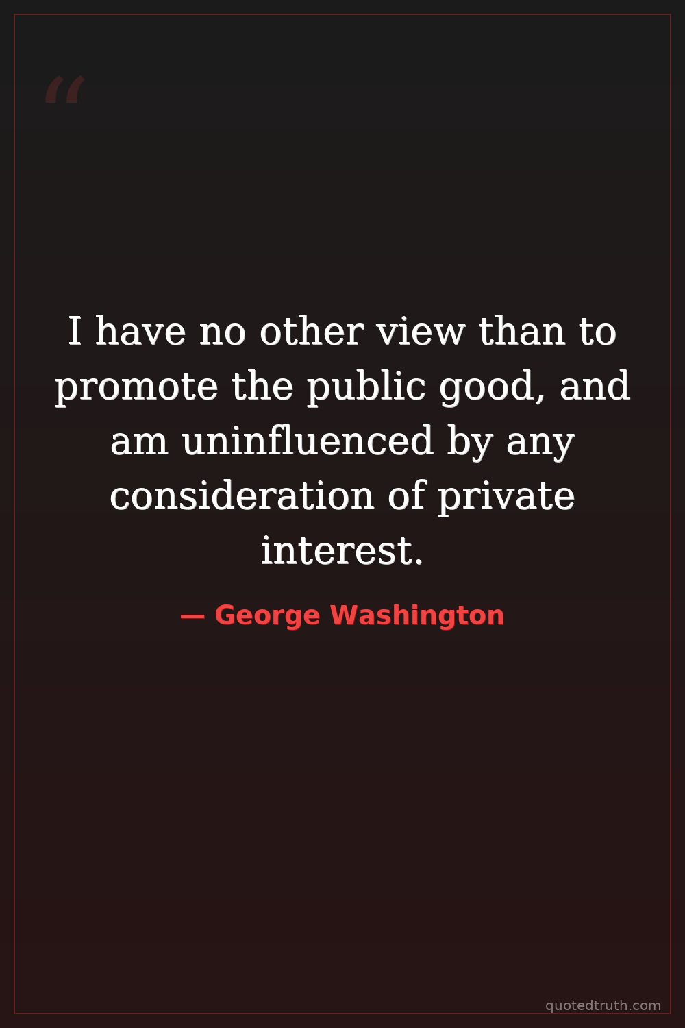 I have no other view than to promote the public good, and am uninfluenced by any consideration of private interest.