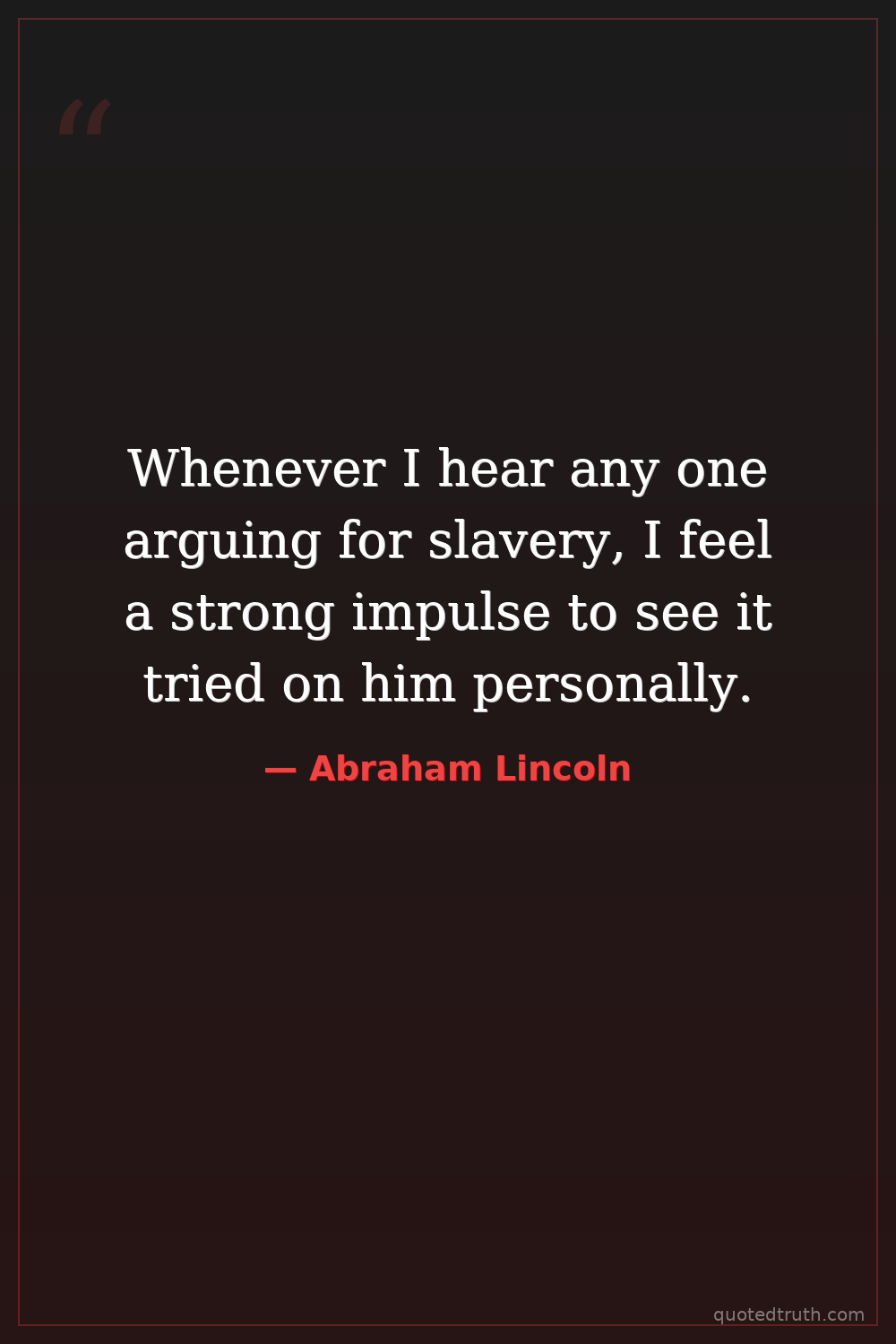 Whenever I hear any one arguing for slavery, I feel a strong impulse to see it tried on him personally.