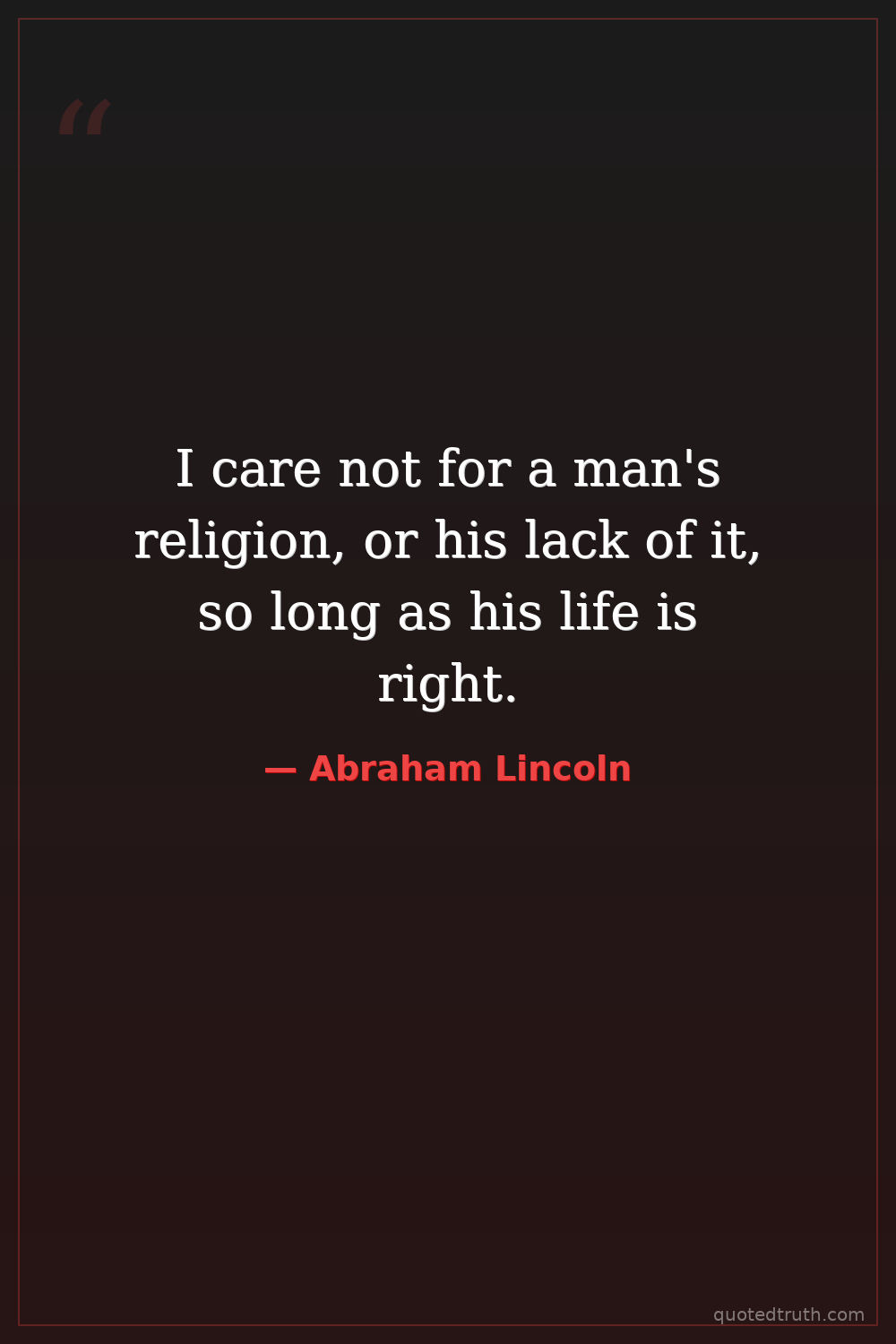 I care not for a man's religion, or his lack of it, so long as his life is right.