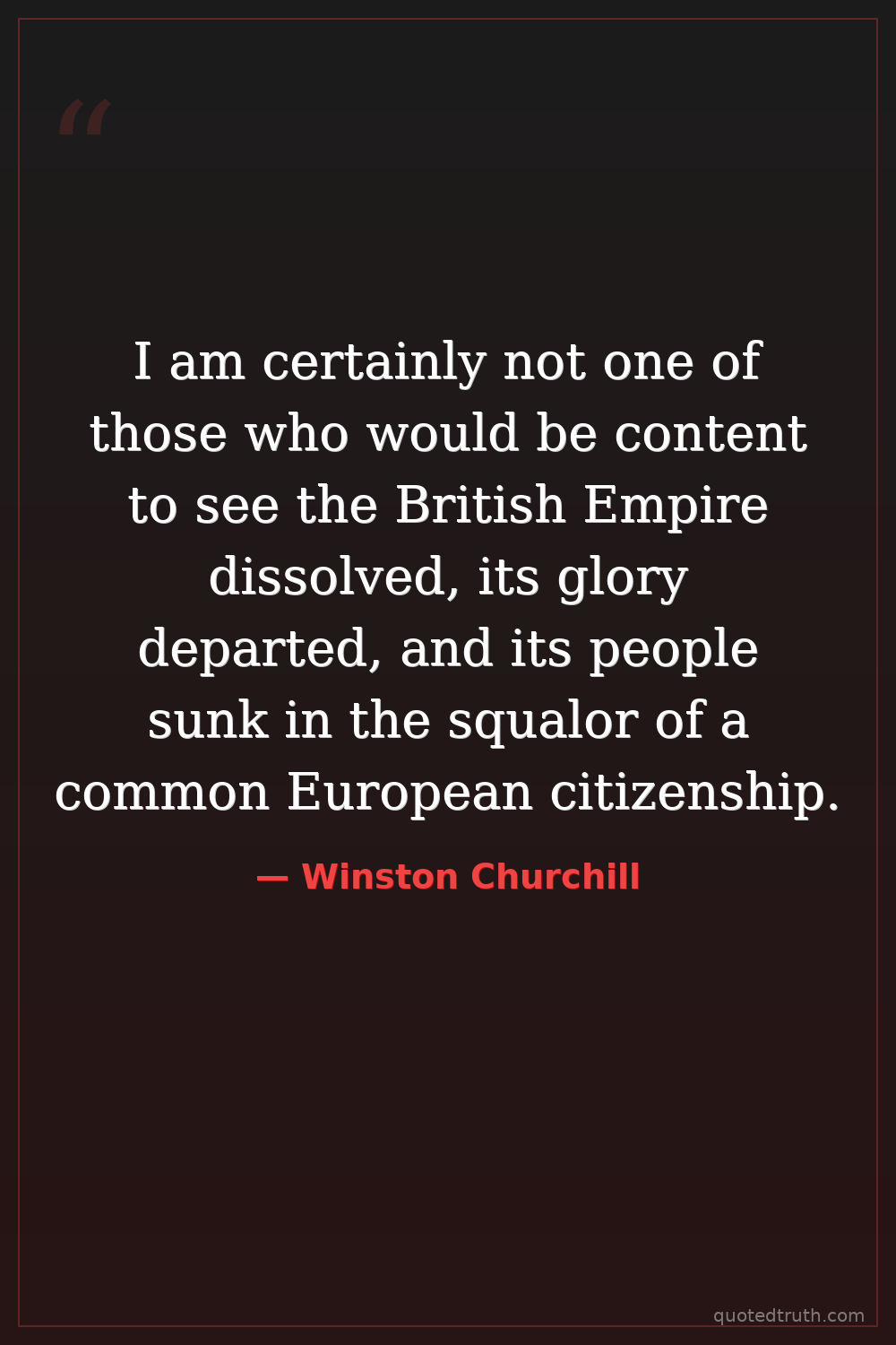 I am certainly not one of those who would be content to see the British Empire dissolved, its glory departed, and its people sunk in the squalor of a common European citizenship.