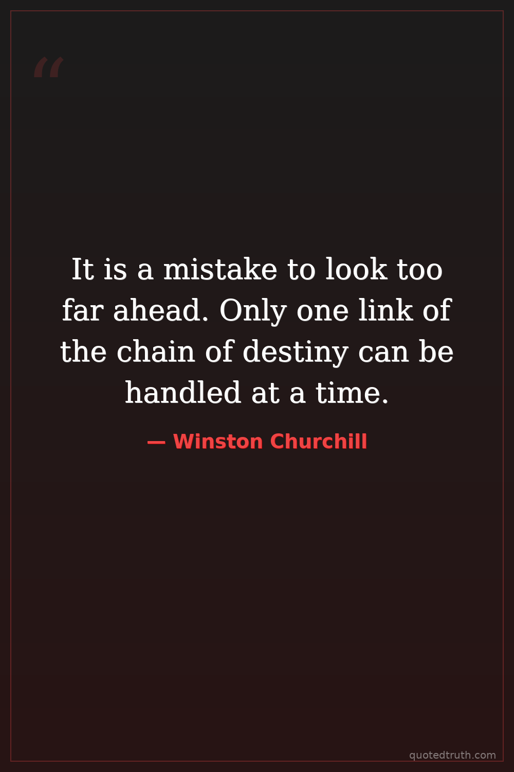 It is a mistake to look too far ahead. Only one link of the chain of destiny can be handled at a time.