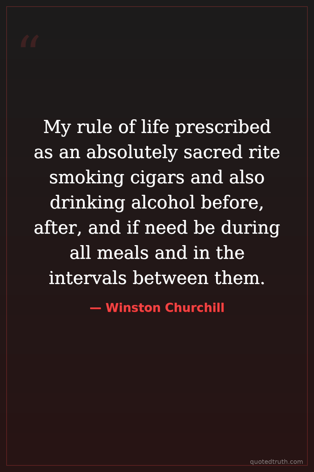 My rule of life prescribed as an absolutely sacred rite smoking cigars and also drinking alcohol before, after, and if need be during all meals and in the intervals between them.