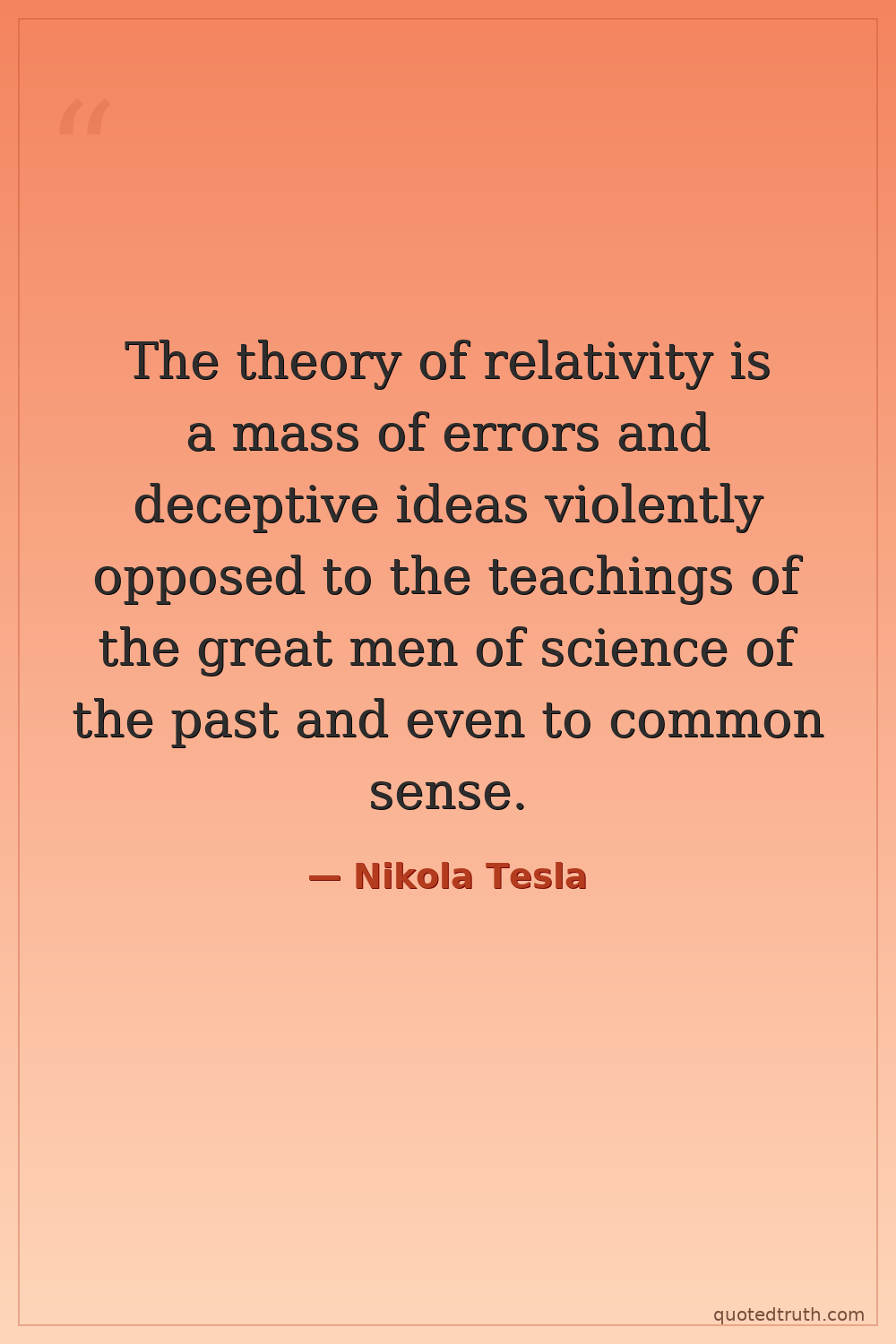 The theory of relativity is a mass of errors and deceptive ideas violently opposed to the teachings of the great men of science of the past and even to common sense.