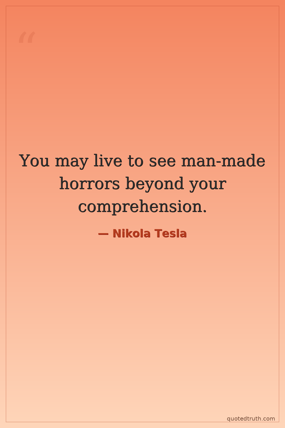 "I have not invented a 'death ray'. I don't need a 'death ray' to destroy an army. I can simply create a vibratory force that would shatter the earth."