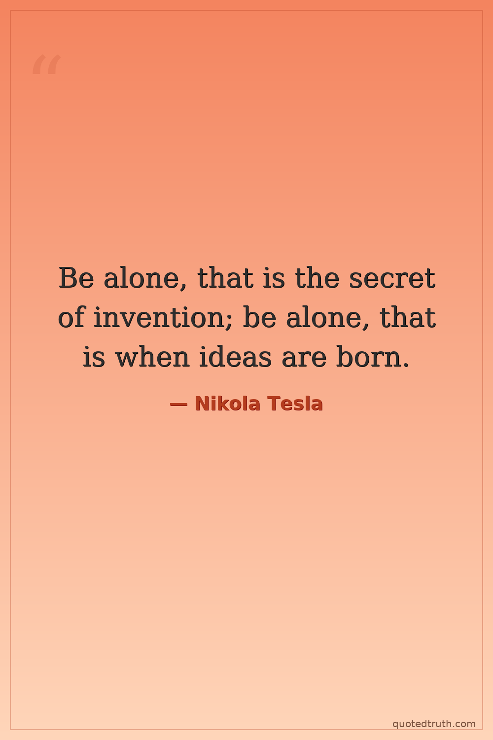 Be alone, that is the secret of invention; be alone, that is when ideas are born.