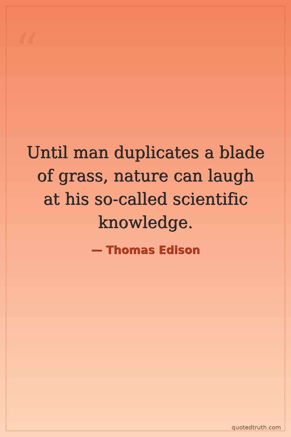Until man duplicates a blade of grass, nature can laugh at his so-called scientific knowledge.