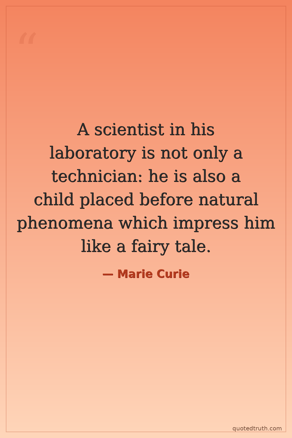 A scientist in his laboratory is not only a technician: he is also a child placed before natural phenomena which impress him like a fairy tale.