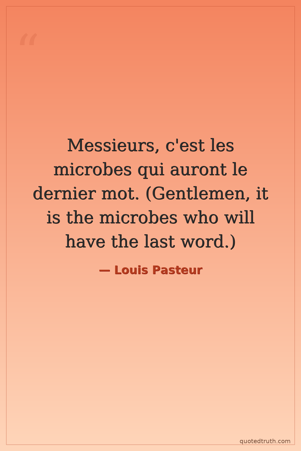 Messieurs, c'est les microbes qui auront le dernier mot. (Gentlemen, it is the microbes who will have the last word.)