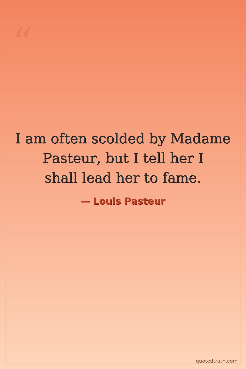 I am often scolded by Madame Pasteur, but I tell her I shall lead her to fame.