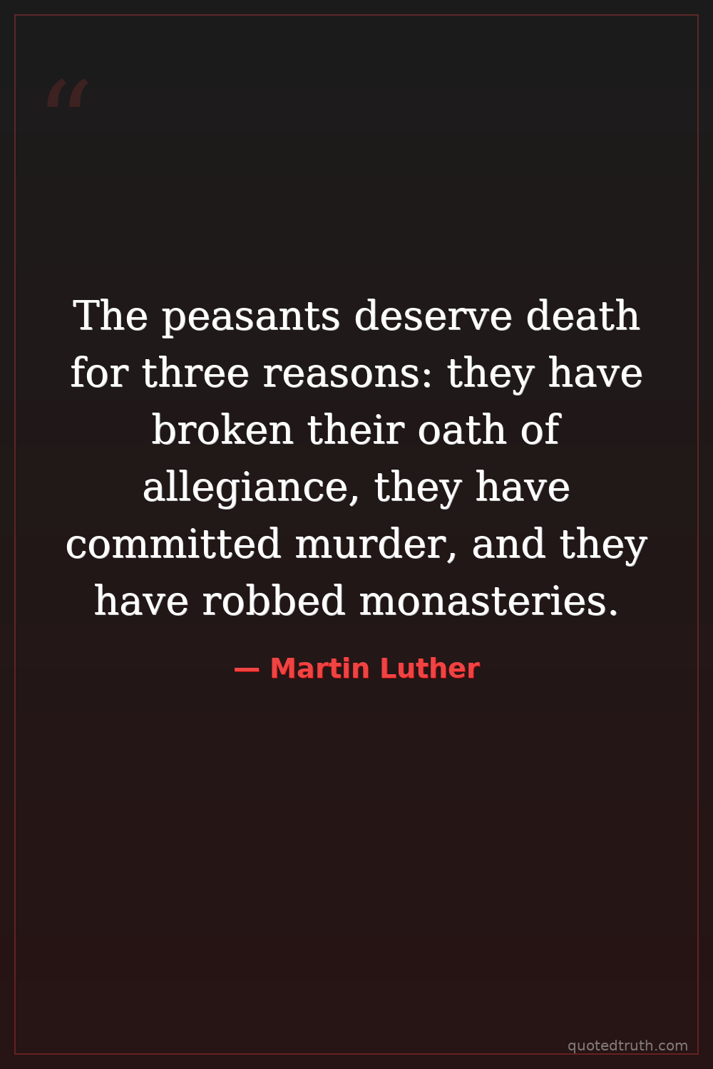 The peasants deserve death for three reasons: they have broken their oath of allegiance, they have committed murder, and they have robbed monasteries.
