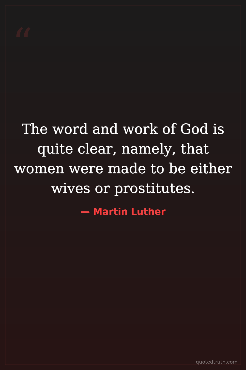 The word and work of God is quite clear, namely, that women were made to be either wives or prostitutes.