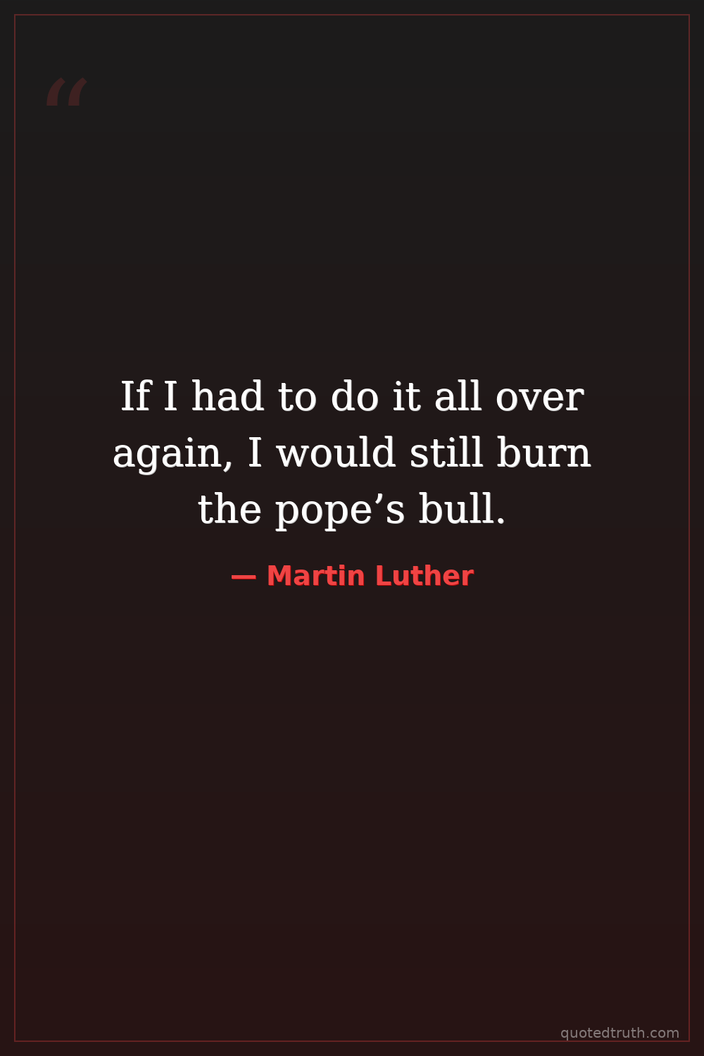 If I had to do it all over again, I would still burn the pope’s bull.