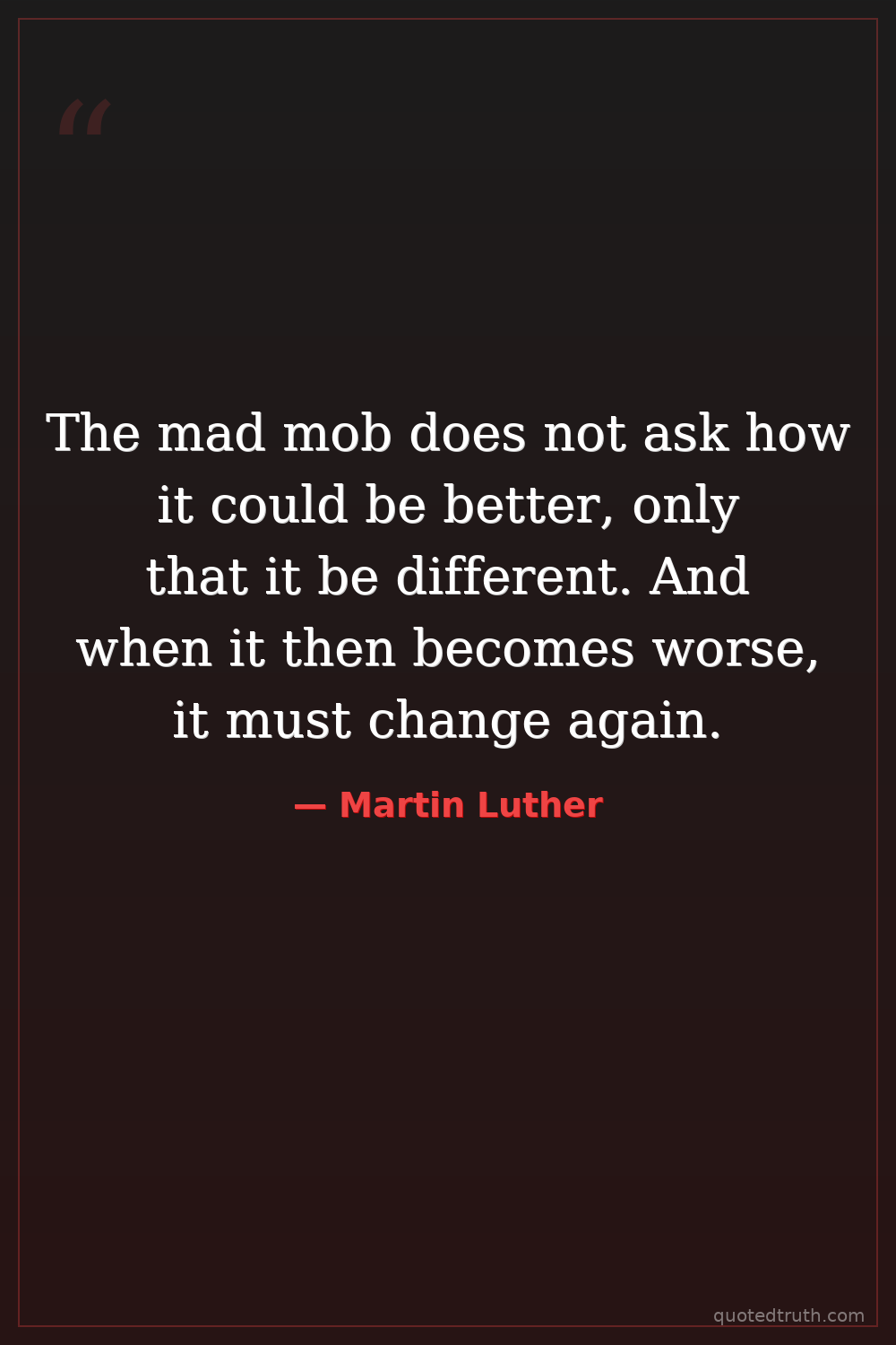 The mad mob does not ask how it could be better, only that it be different. And when it then becomes worse, it must change again.