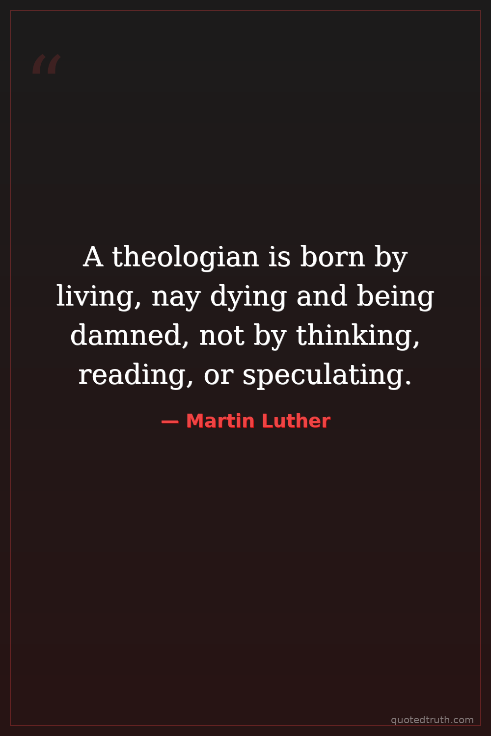 A theologian is born by living, nay dying and being damned, not by thinking, reading, or speculating.