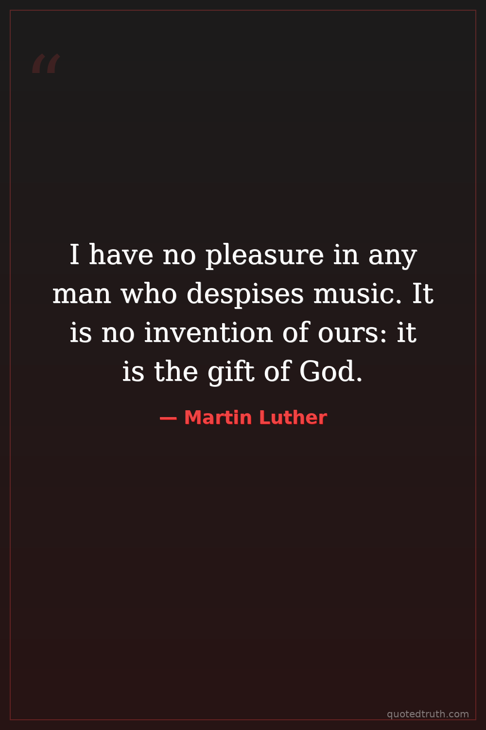 I have no pleasure in any man who despises music. It is no invention of ours: it is the gift of God.