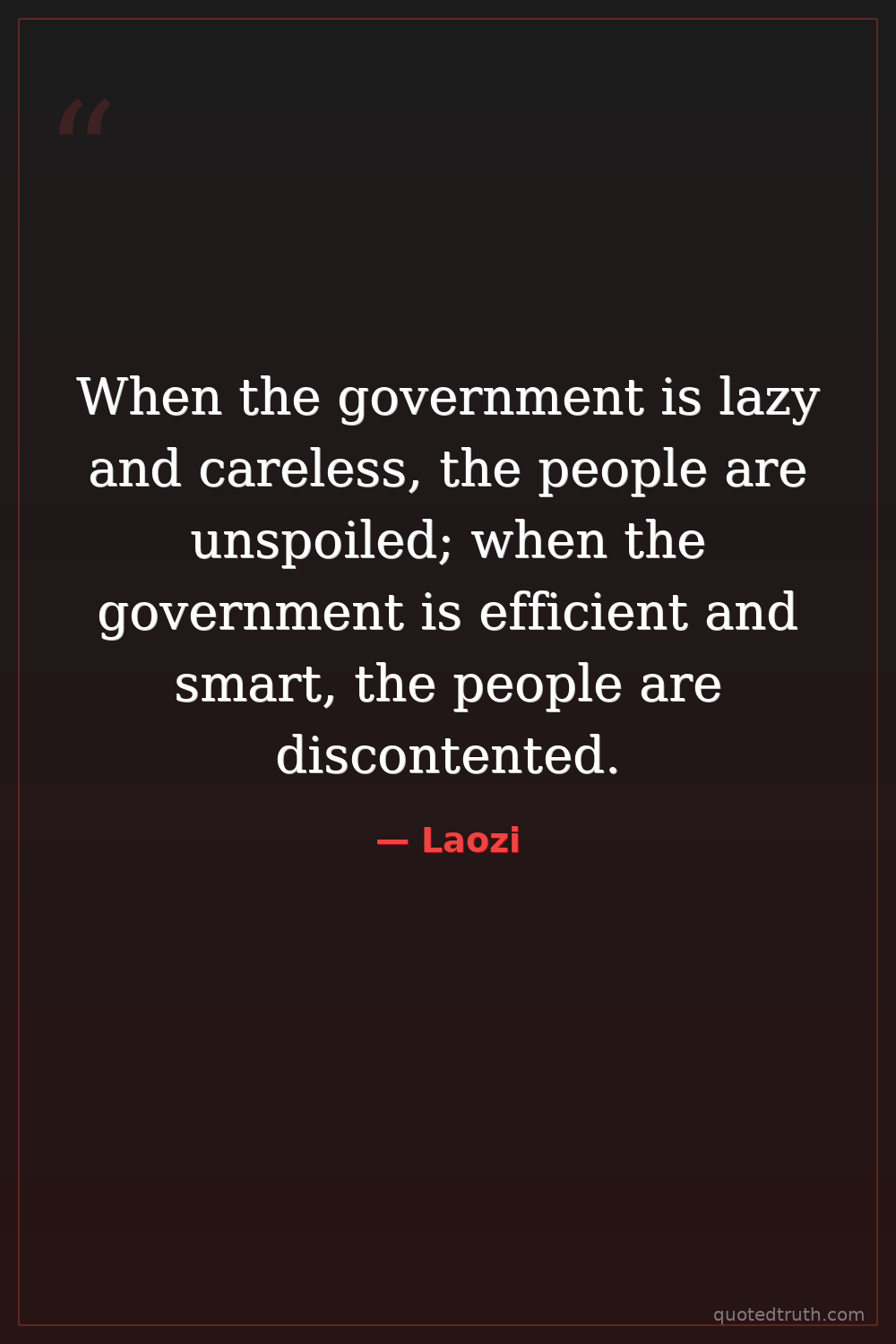 When the government is lazy and careless, the people are unspoiled; when the government is efficient and smart, the people are discontented.
