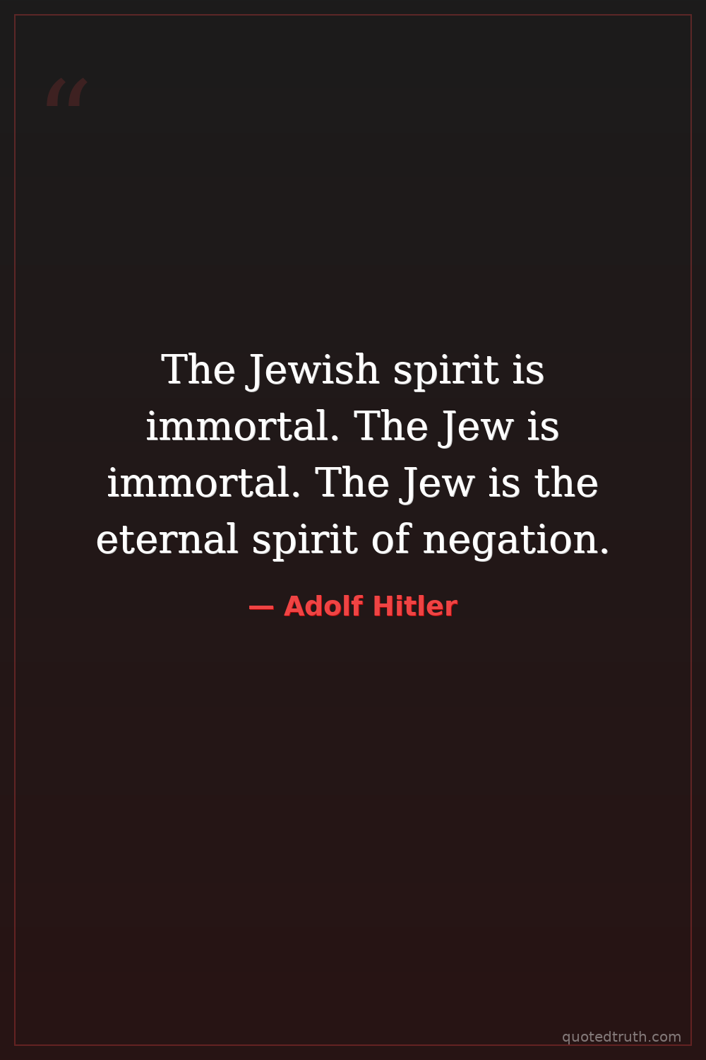 The Jewish spirit is immortal. The Jew is immortal. The Jew is the eternal spirit of negation.