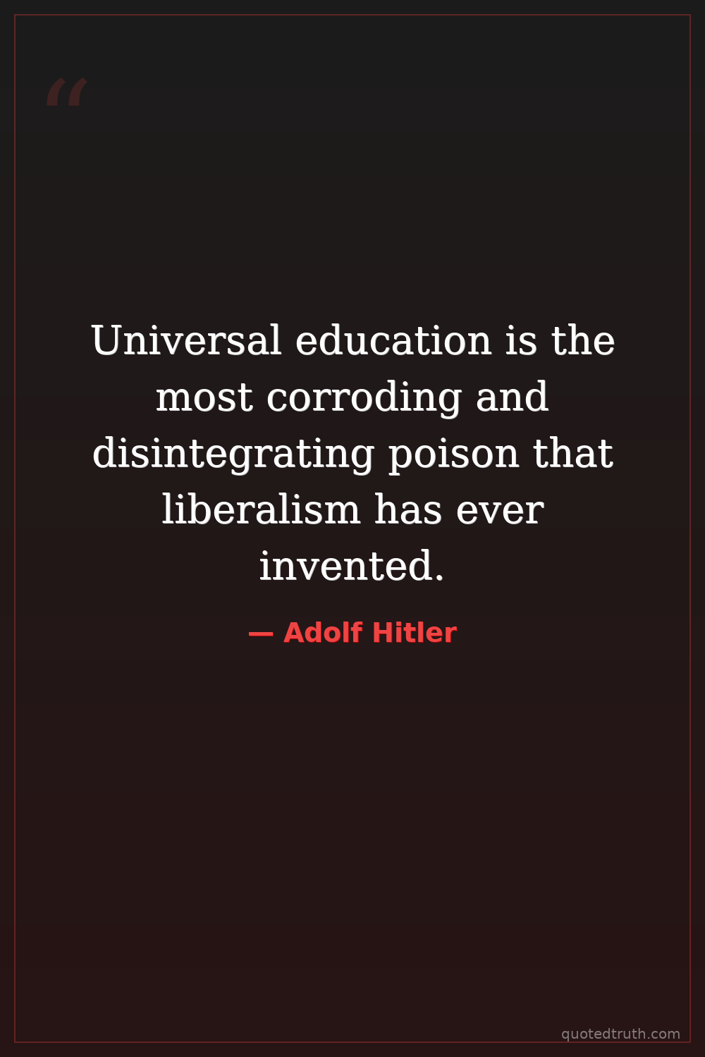 Universal education is the most corroding and disintegrating poison that liberalism has ever invented.