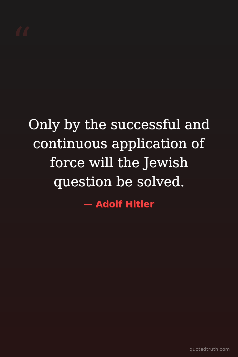 Only by the successful and continuous application of force will the Jewish question be solved.