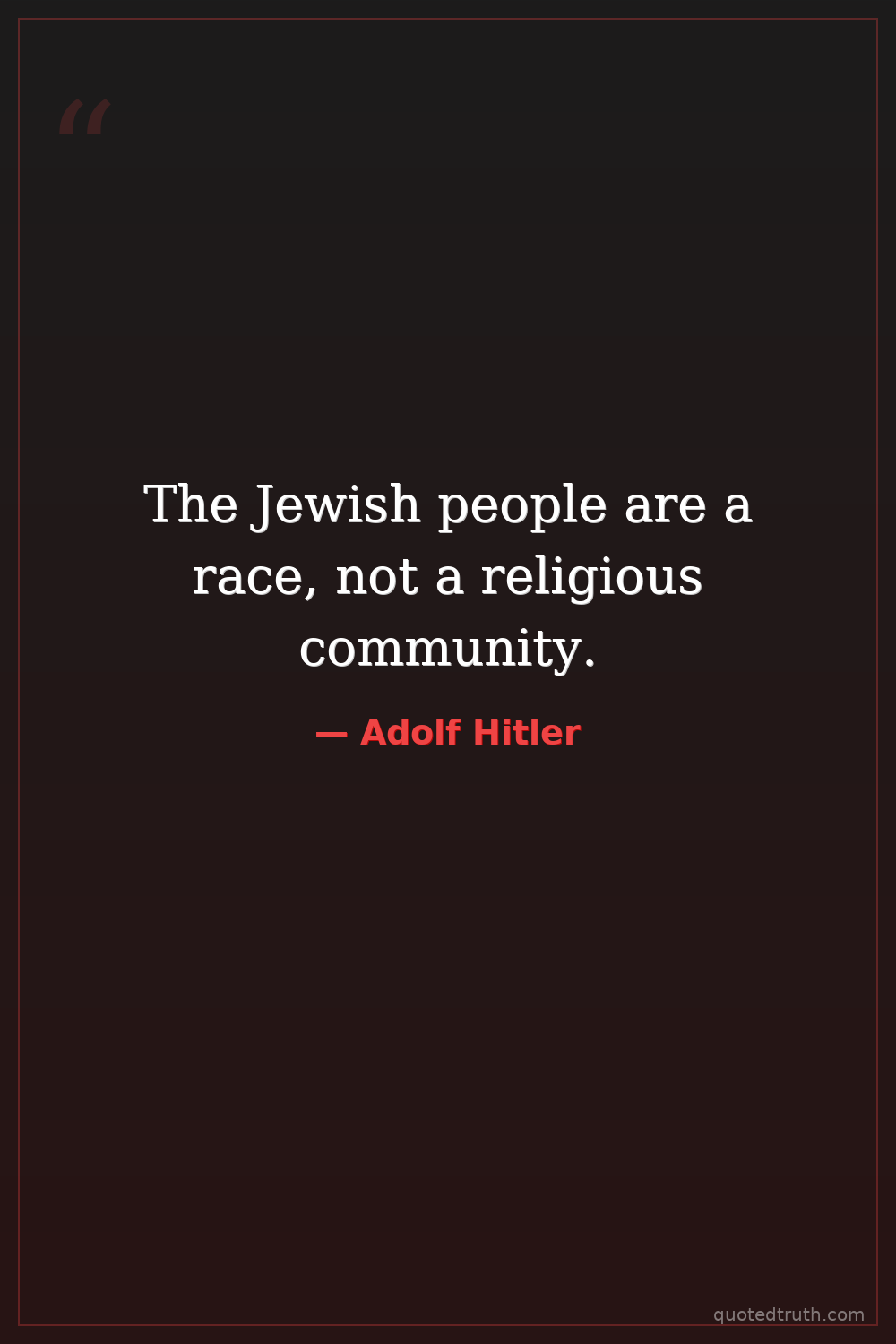 Controversial"The folkish philosophy of life must succeed in bringing about a nobler age, in which men no longer think of polishing up the races of dogs, horses, and cats, but in improving the race of man himself."