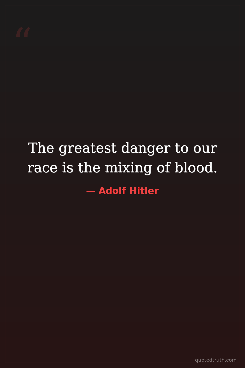 The greatest danger to our race is the mixing of blood.