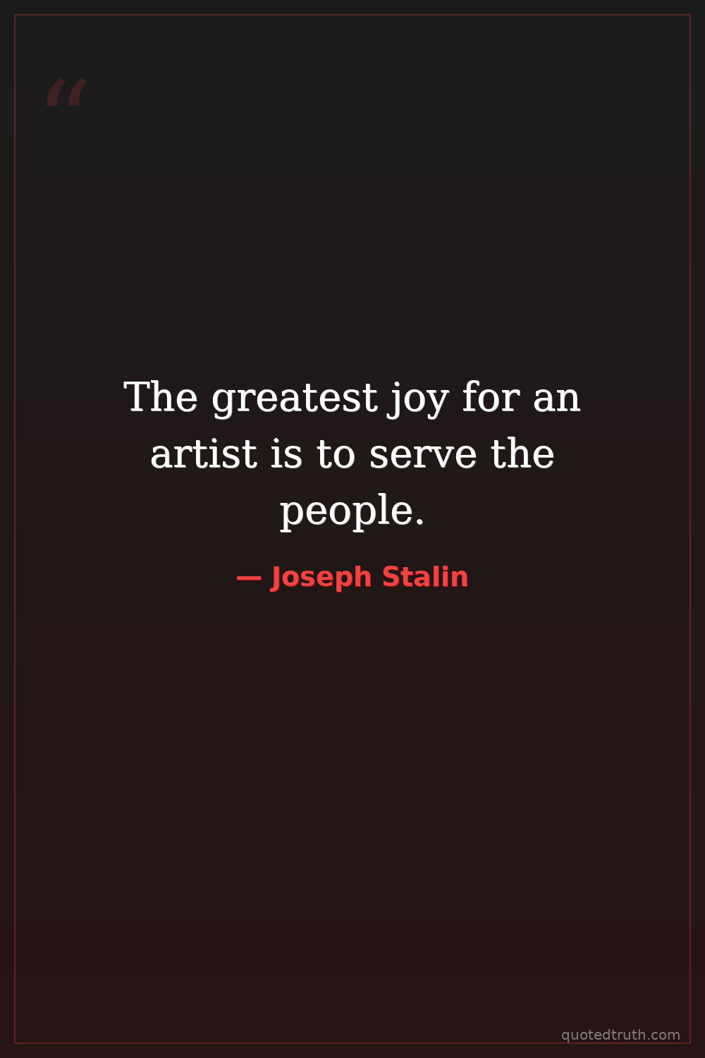 The greatest joy for an artist is to serve the people.