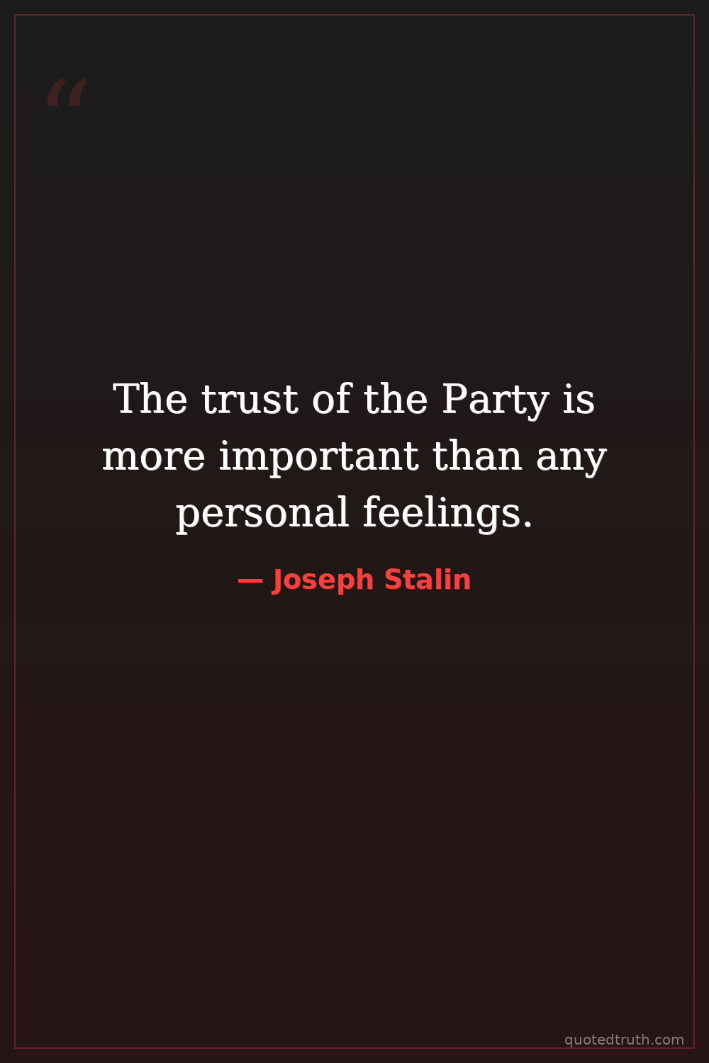 The trust of the Party is more important than any personal feelings.