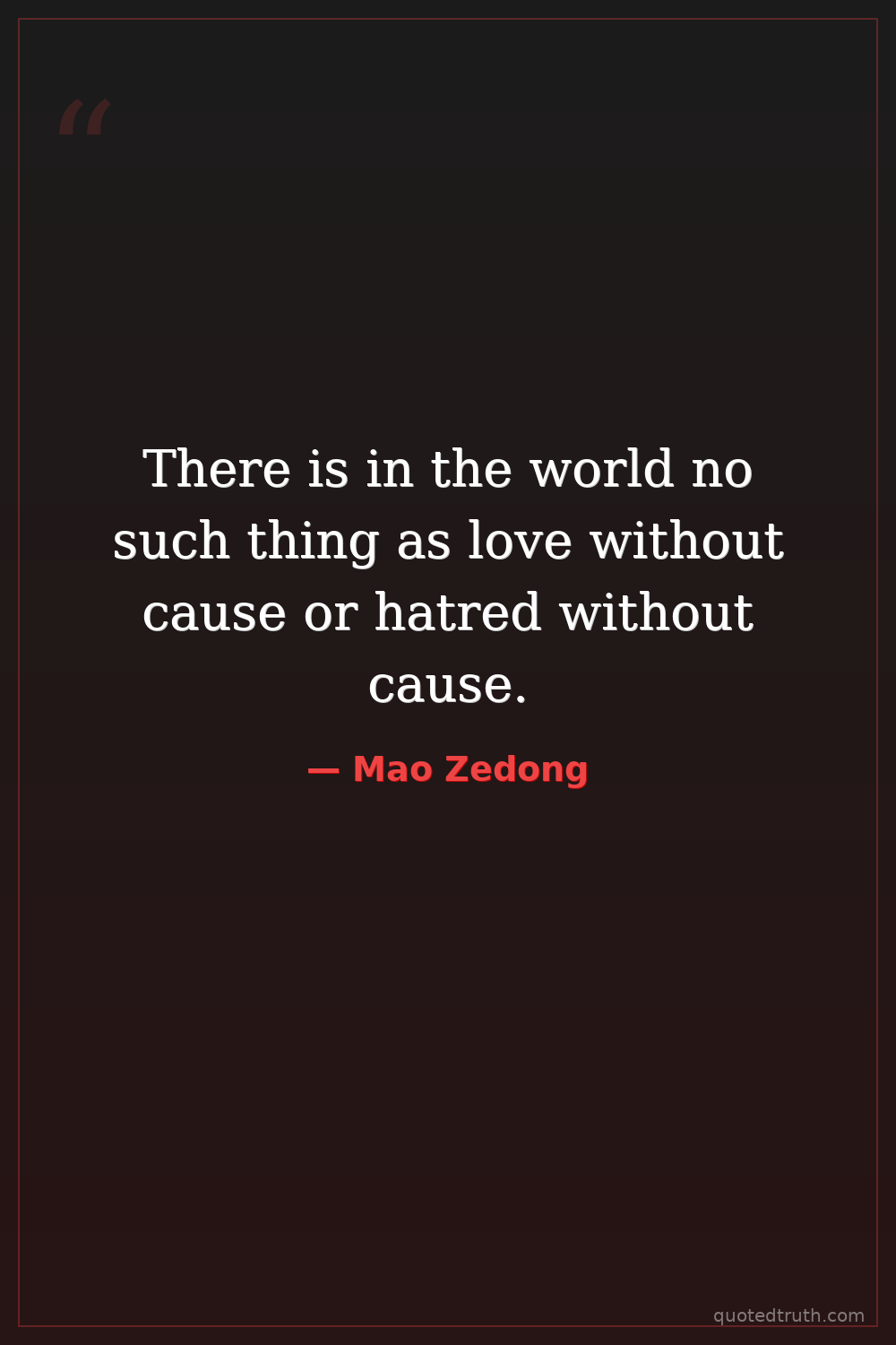 There is in the world no such thing as love without cause or hatred without cause.