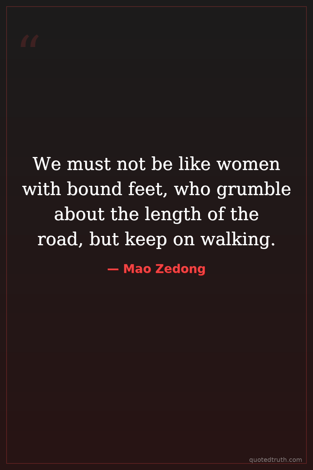 We must not be like women with bound feet, who grumble about the length of the road, but keep on walking.