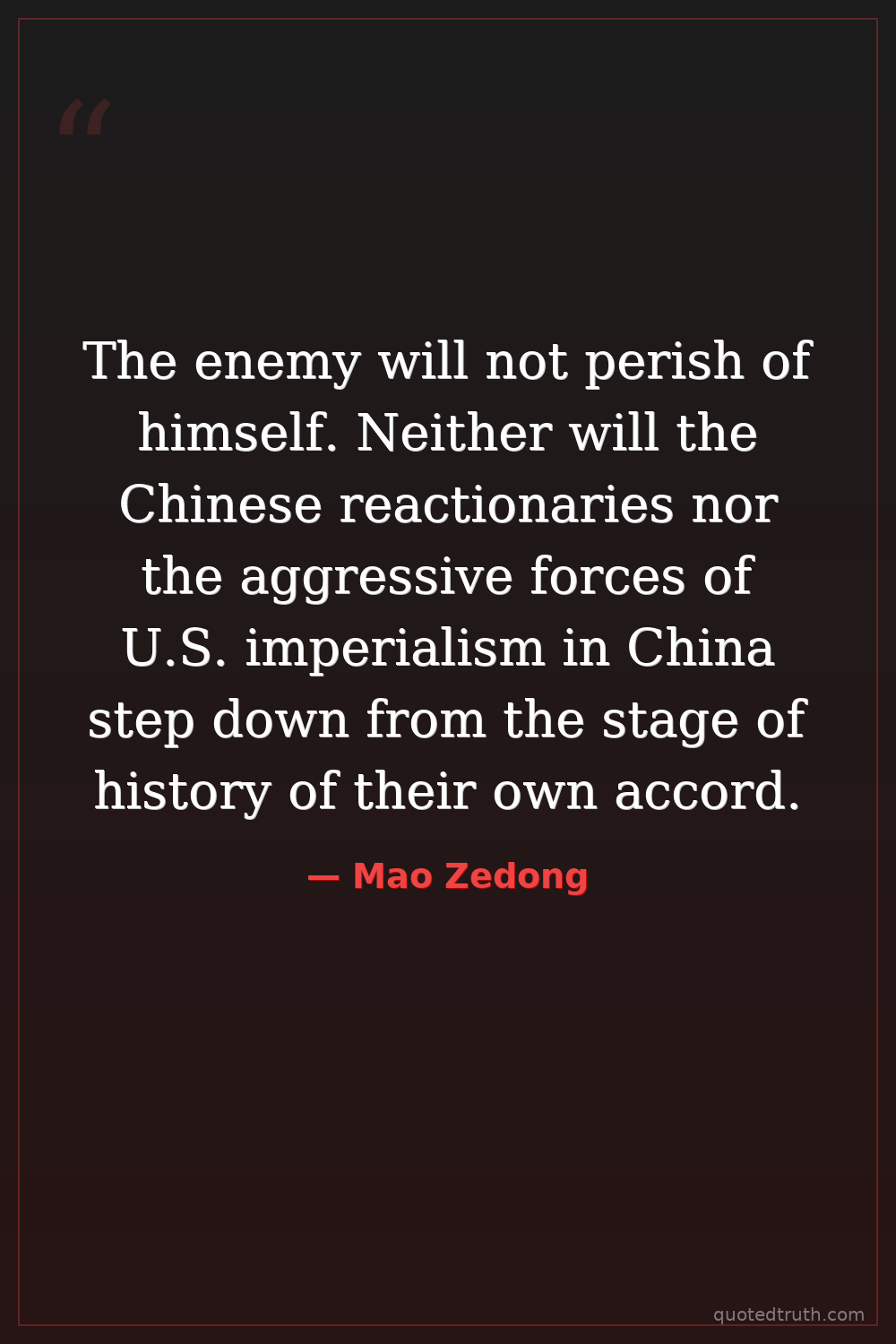 The enemy will not perish of himself. Neither will the Chinese reactionaries nor the aggressive forces of U.S. imperialism in China step down from the stage of history of their own accord.