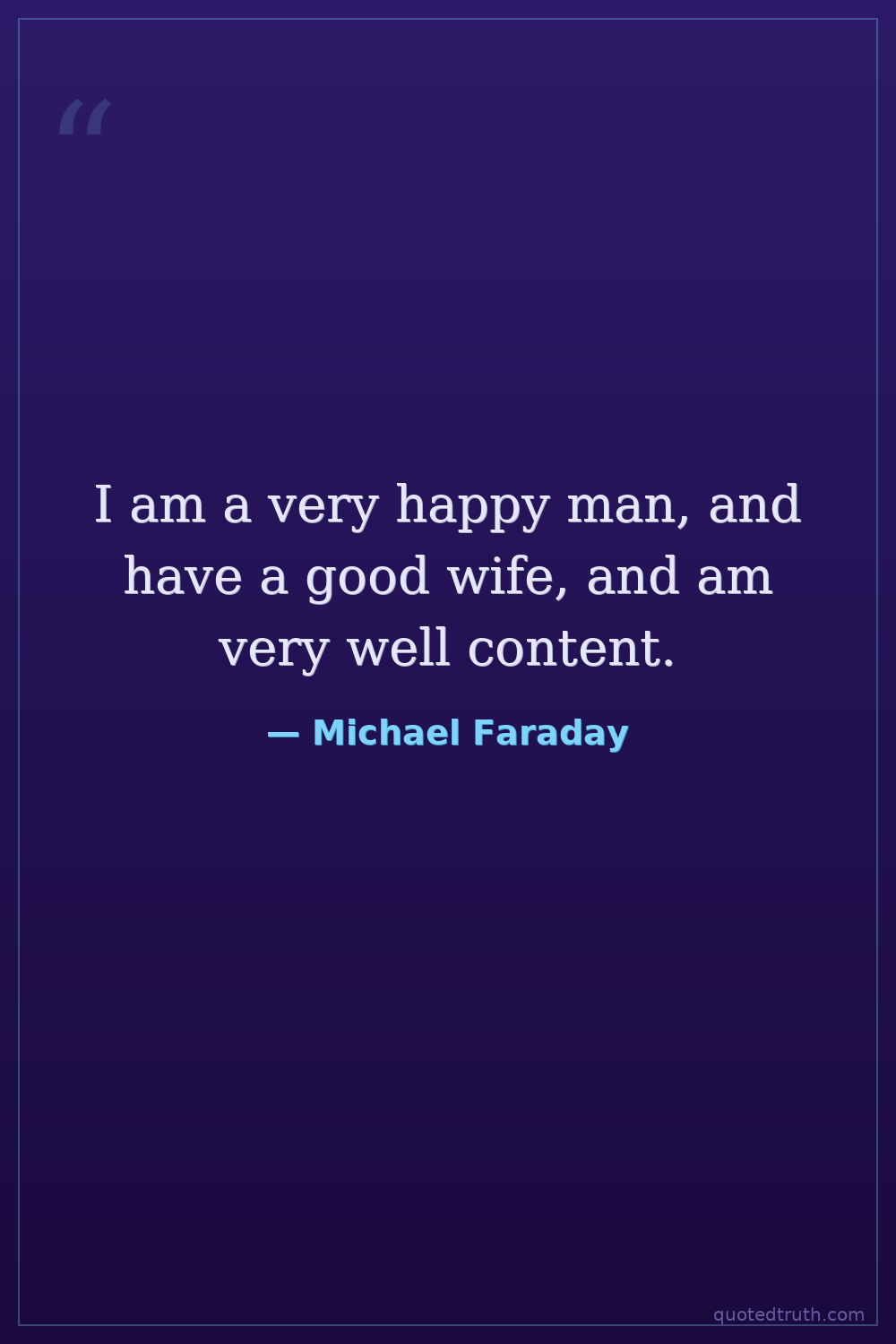 I am a very happy man, and have a good wife, and am very well content.