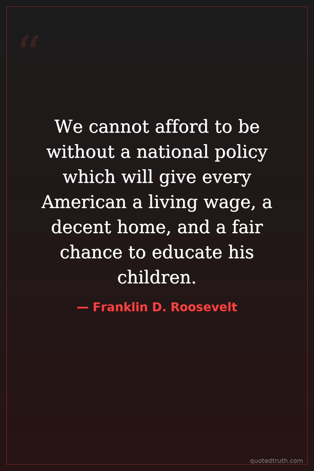 We cannot afford to be without a national policy which will give every American a living wage, a decent home, and a fair chance to educate his children.