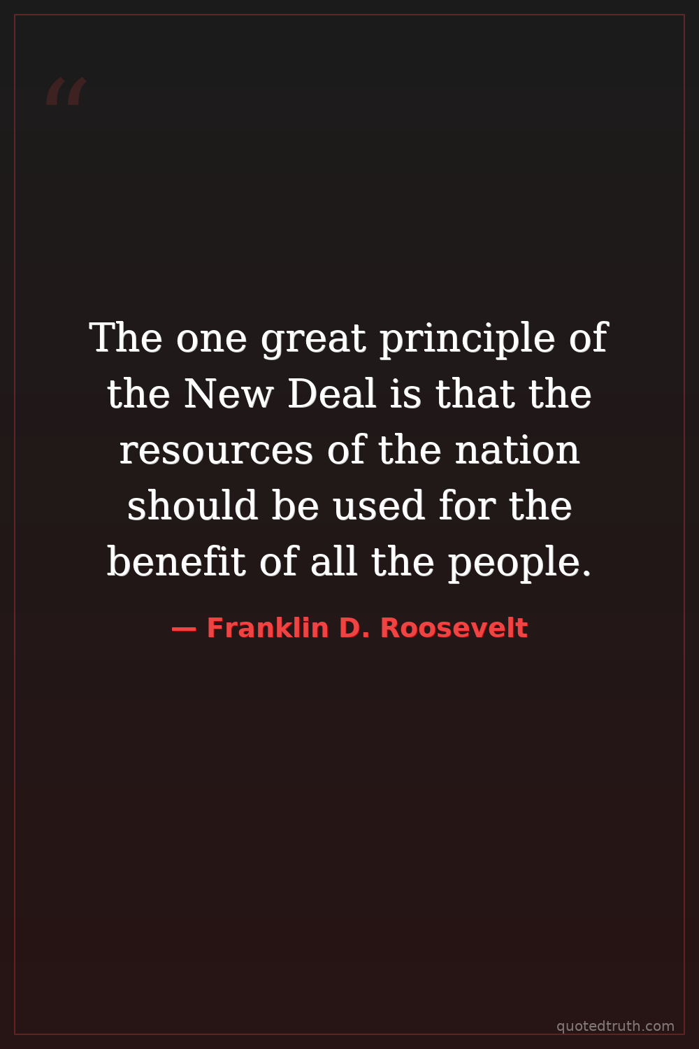 The one great principle of the New Deal is that the resources of the nation should be used for the benefit of all the people.