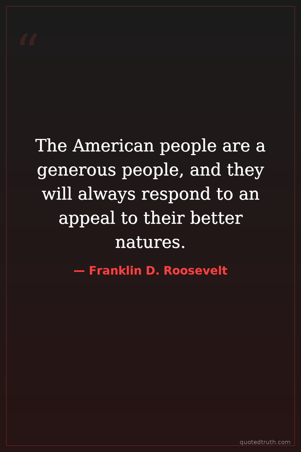 The American people are a generous people, and they will always respond to an appeal to their better natures.