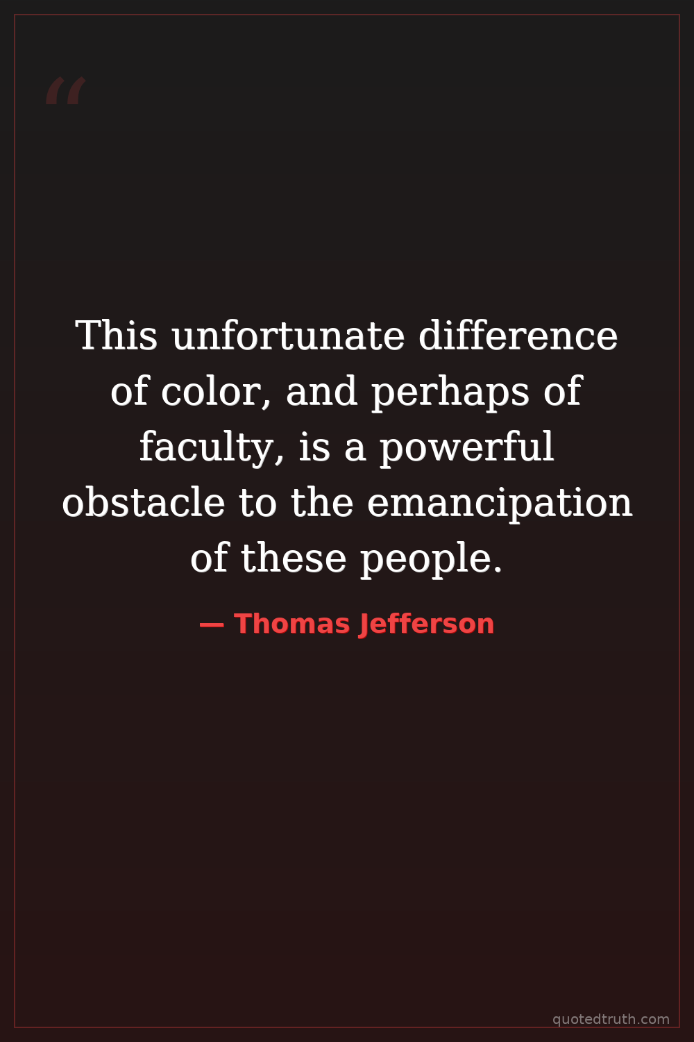 This unfortunate difference of color, and perhaps of faculty, is a powerful obstacle to the emancipation of these people.