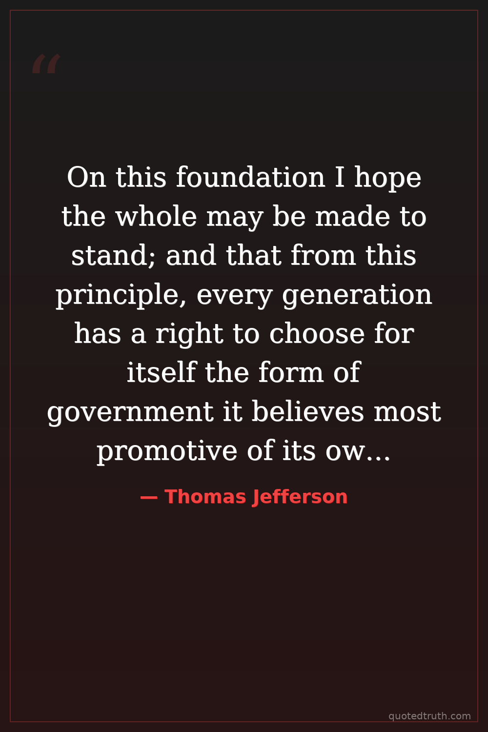 On this foundation I hope the whole may be made to stand; and that from this principle, every generation has a right to choose for itself the form of government it believes most promotive of its own happiness, consequently to change it as circumstances change.
