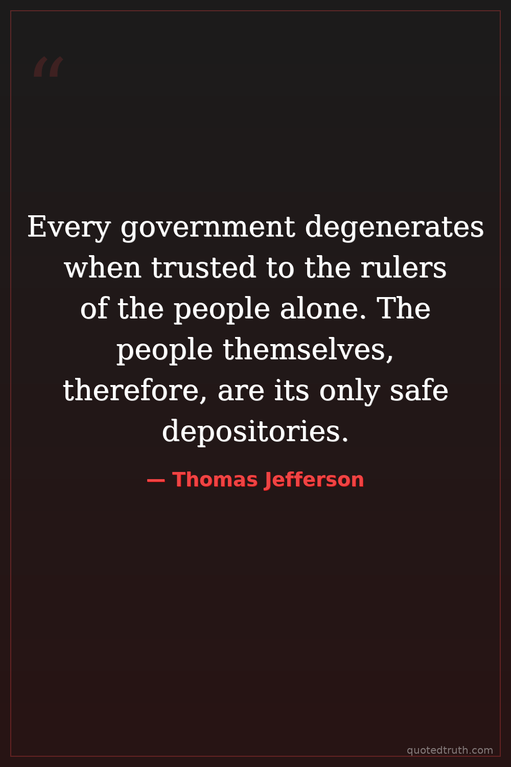 Every government degenerates when trusted to the rulers of the people alone. The people themselves, therefore, are its only safe depositories.