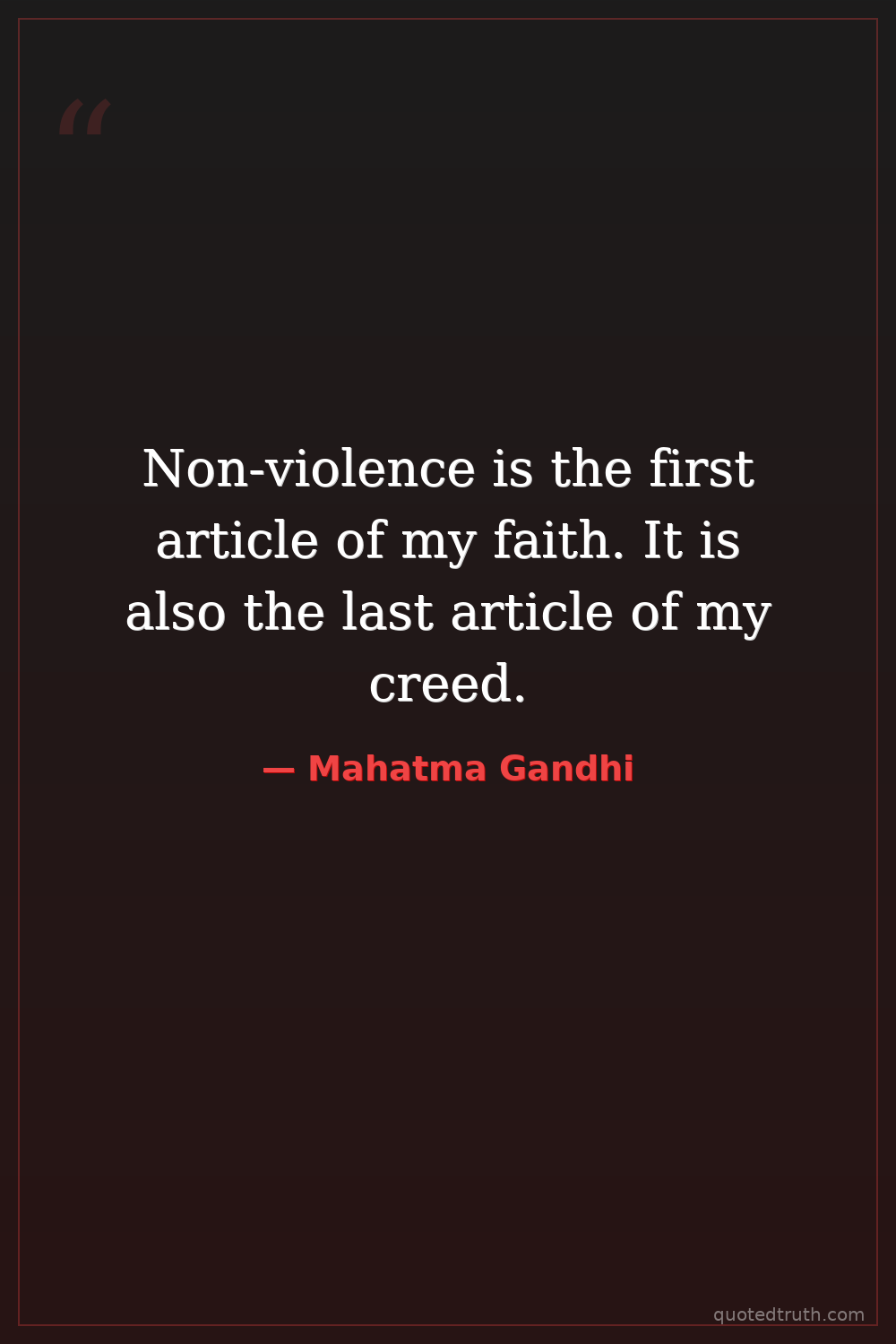 Non-violence is the first article of my faith. It is also the last article of my creed.