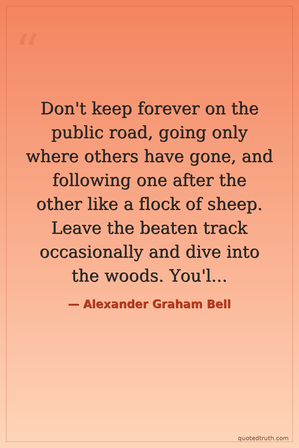 Don't keep forever on the public road, going only where others have gone, and following one after the other like a flock of sheep. Leave the beaten track occasionally and dive into the woods. You'll be certain to find something you have never seen before.
