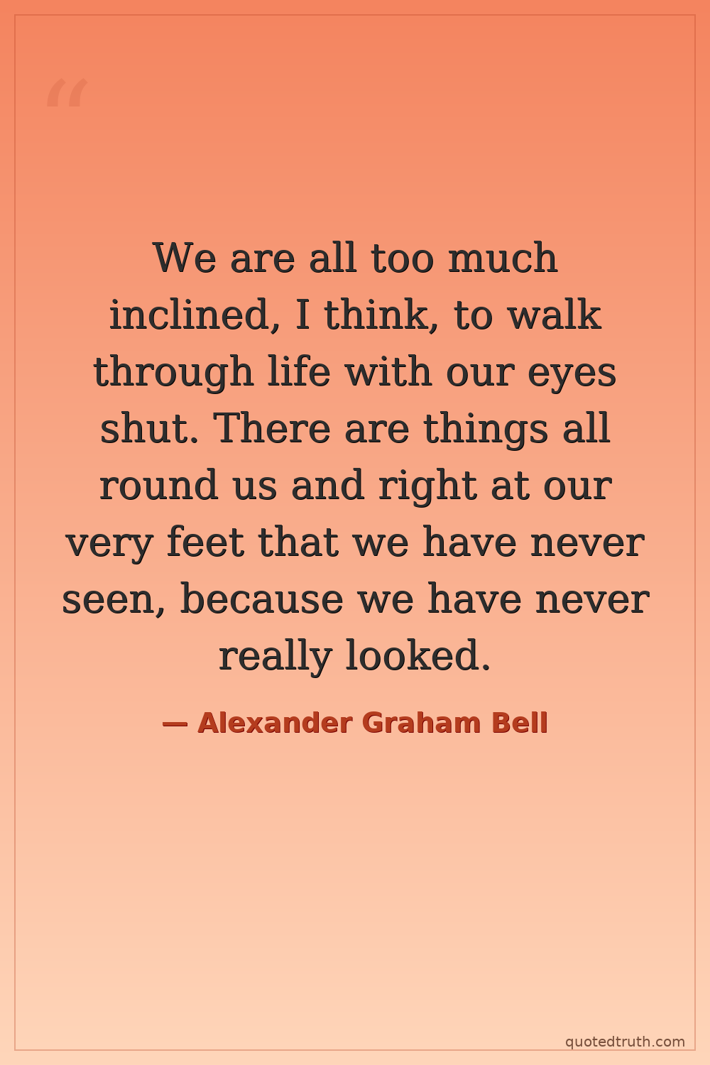 We are all too much inclined, I think, to walk through life with our eyes shut. There are things all round us and right at our very feet that we have never seen, because we have never really looked.