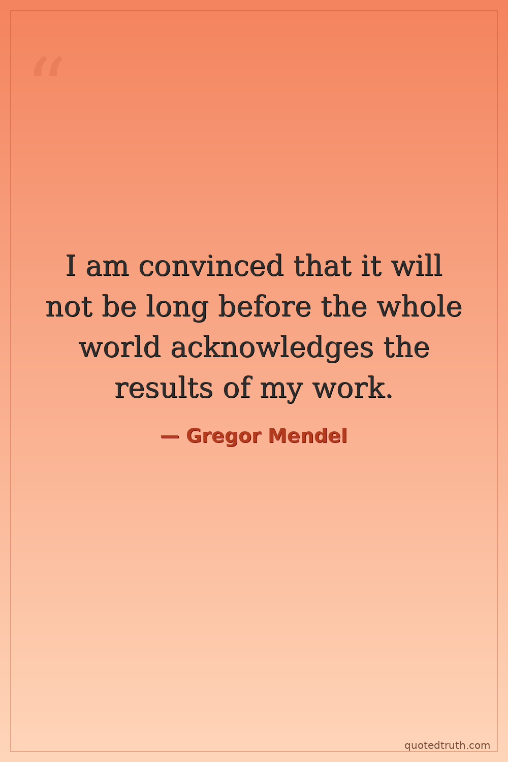 I am convinced that it will not be long before the whole world acknowledges the results of my work.