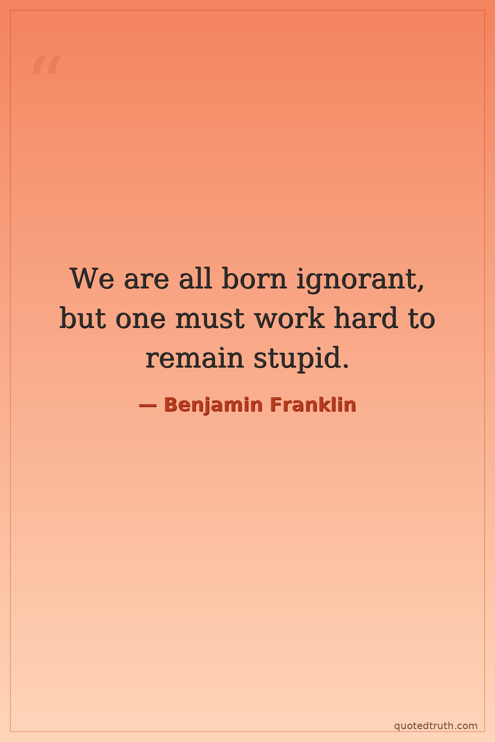 We are all born ignorant, but one must work hard to remain stupid.