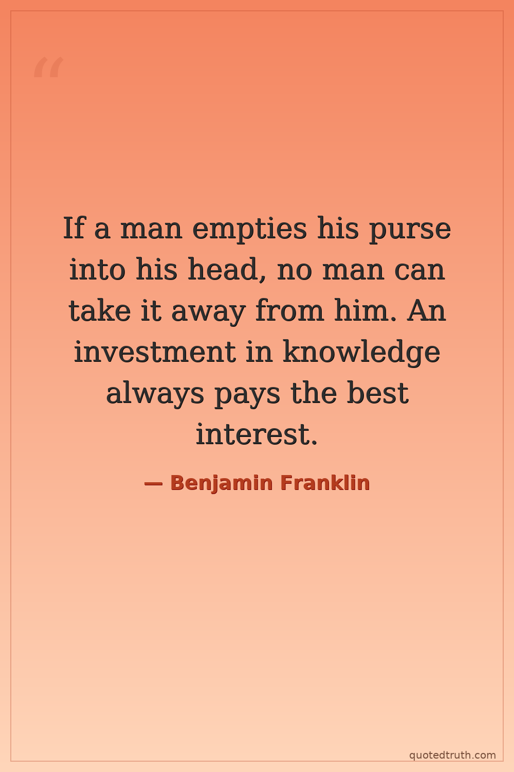 If a man empties his purse into his head, no man can take it away from him. An investment in knowledge always pays the best interest.