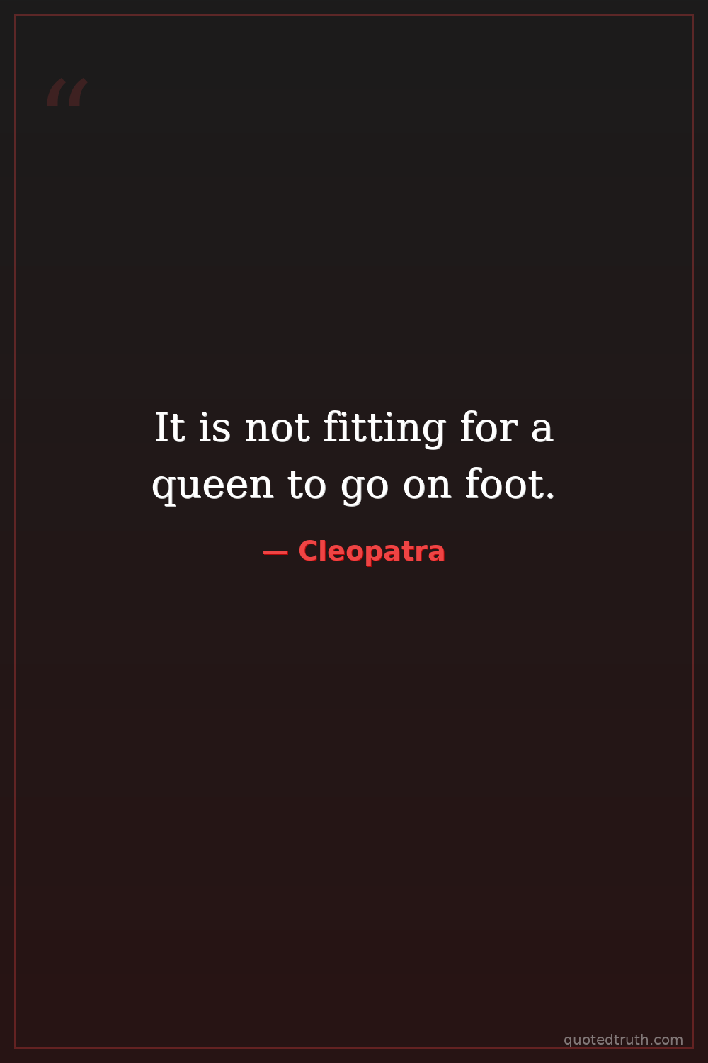 It is not fitting for a queen to go on foot.