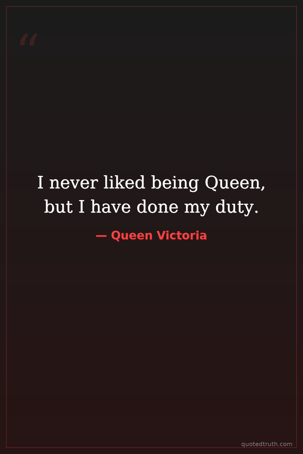 I never liked being Queen, but I have done my duty.